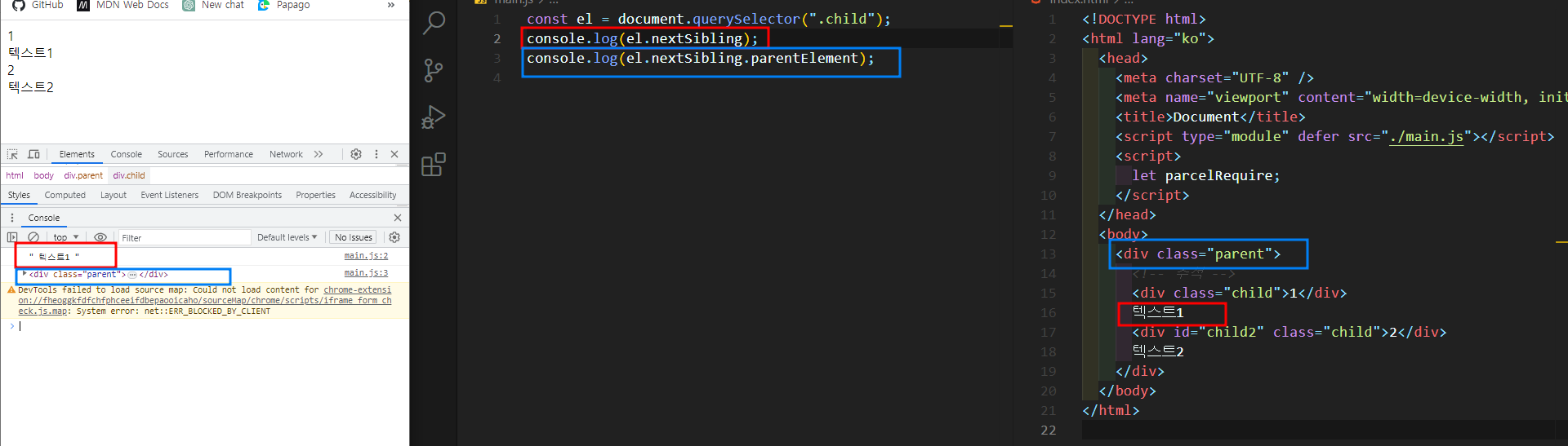 위와 같은 구조 일 때 Node에서 사용한다는 가정을 하고 주석에 parentElement를 찾아도 똑같은 결과값을 반환한다.