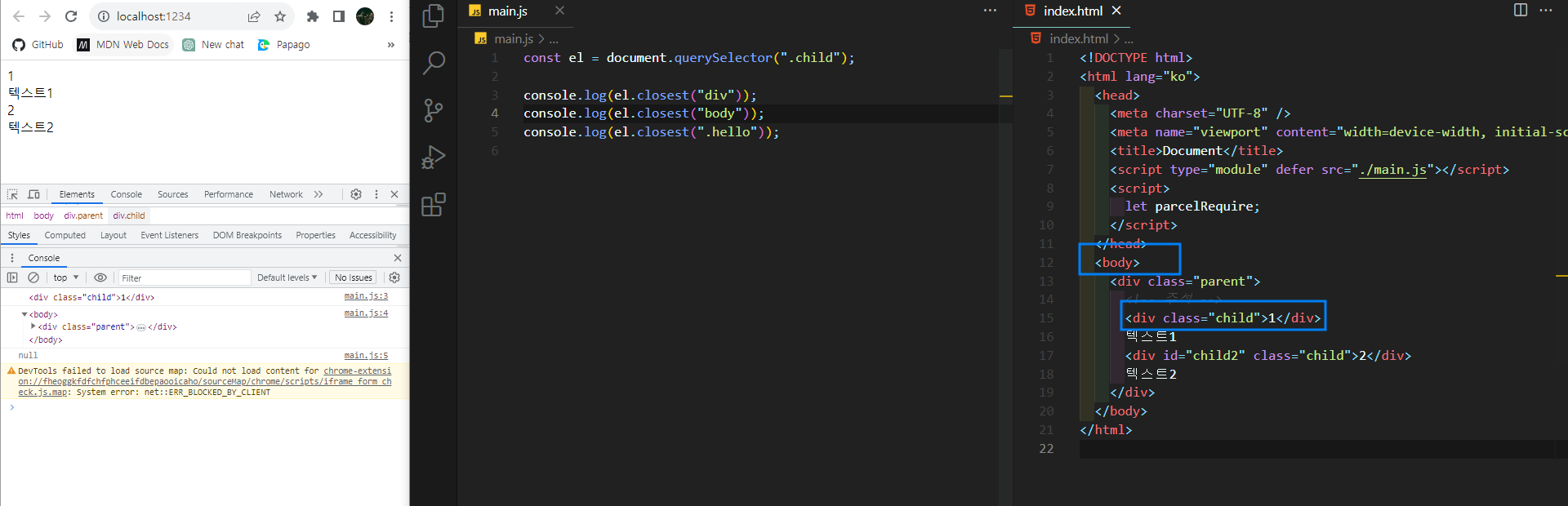 - 자신을 포함한 조상 요소 중 'CSS 선택자'와 일치하는 가장 가까운 요소를 반환한다.