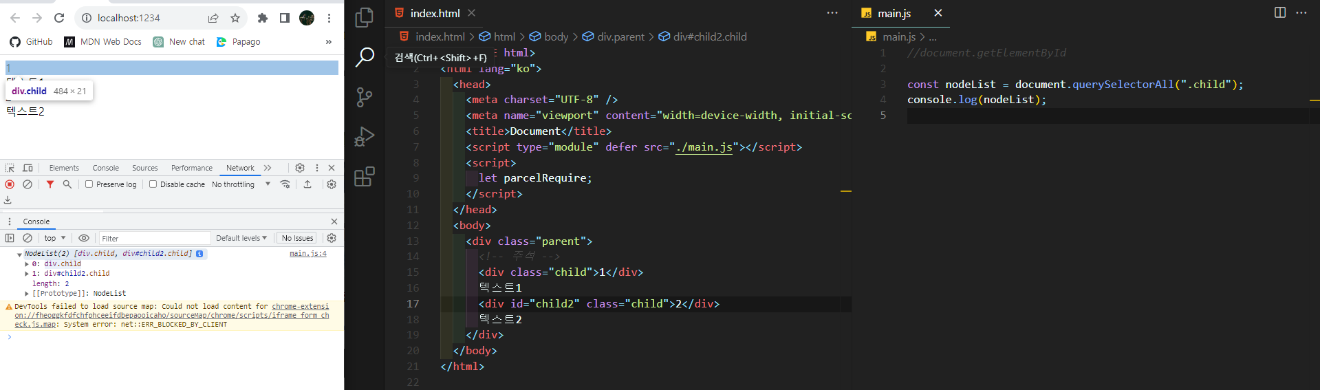 - 'CSS 선택자'로 검색한 모든 요소를 'NodeList'로 반환한다.